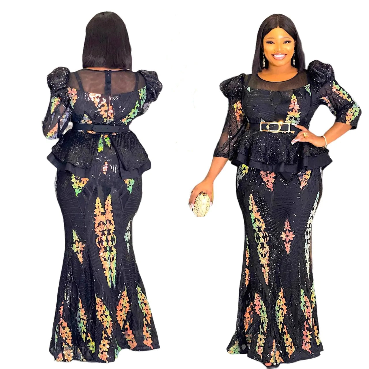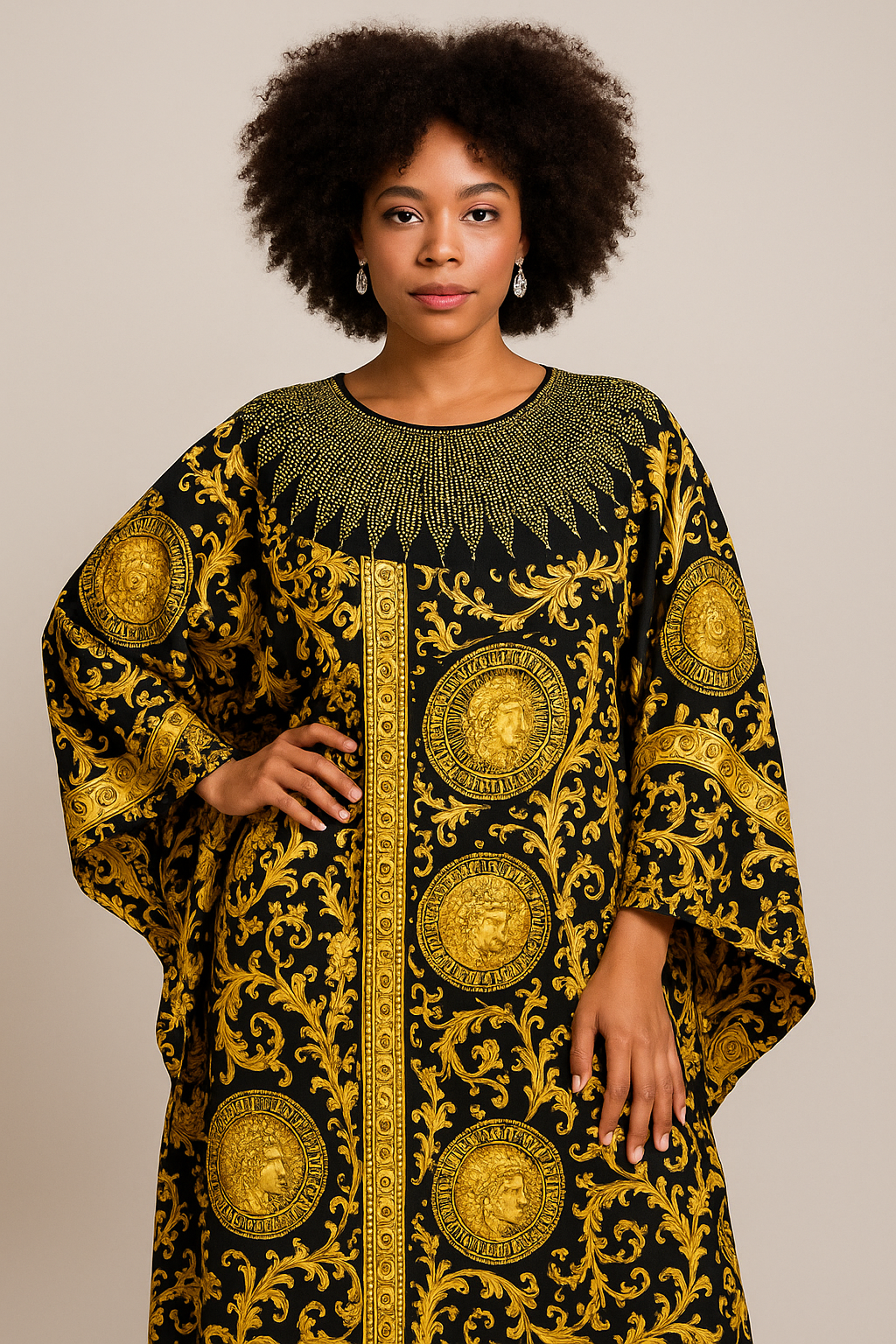 Elegant super stretchy bedazzled with gold rhinestone maxi dress with bat sleeves. This dress is absolutely show stopping.