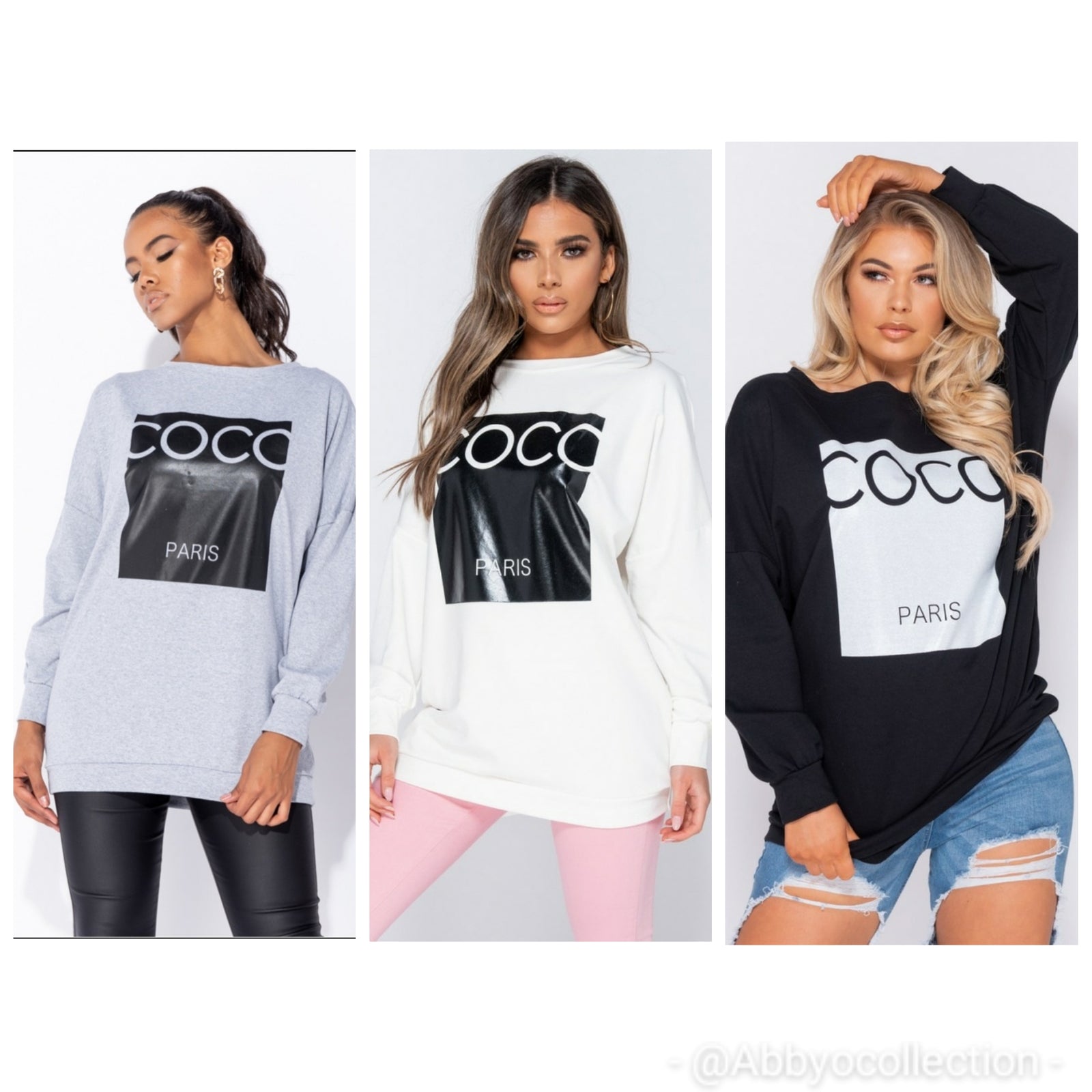 This oversized sweatshirt featuring coco print will keep you stylish & sporty this season. For a chic day look team...